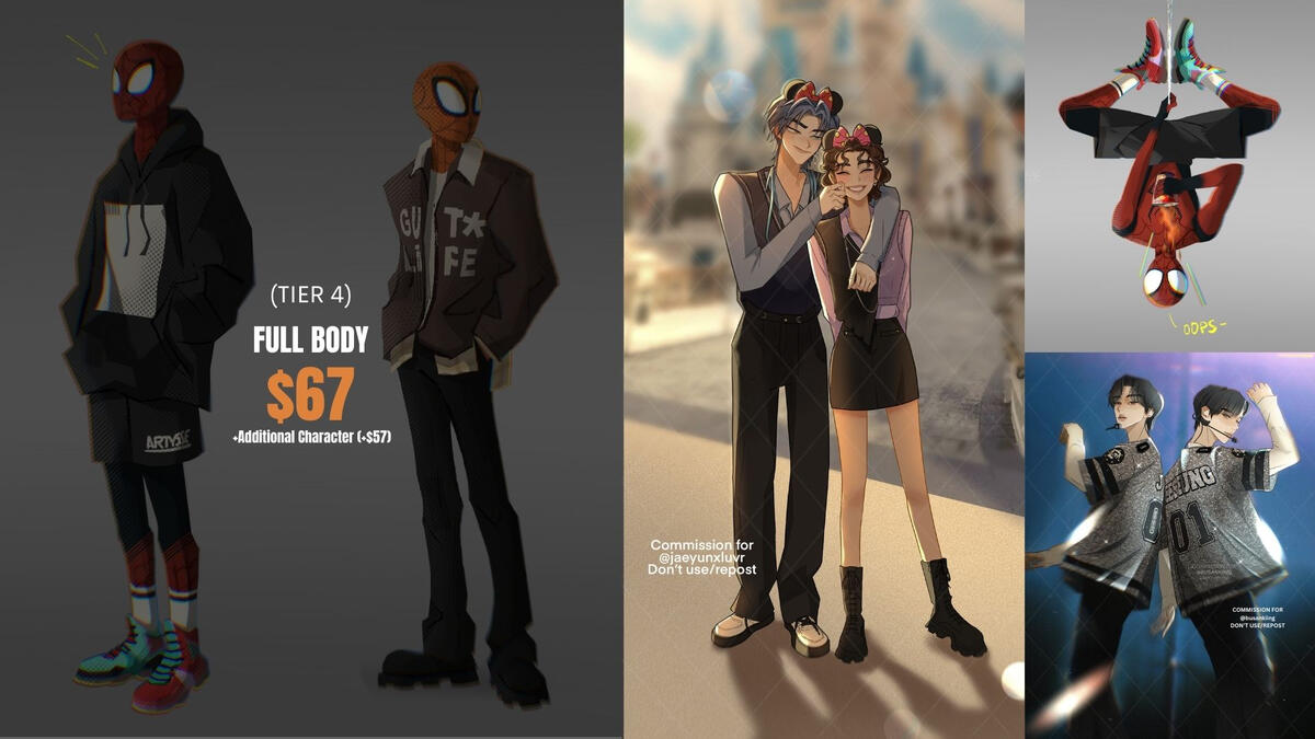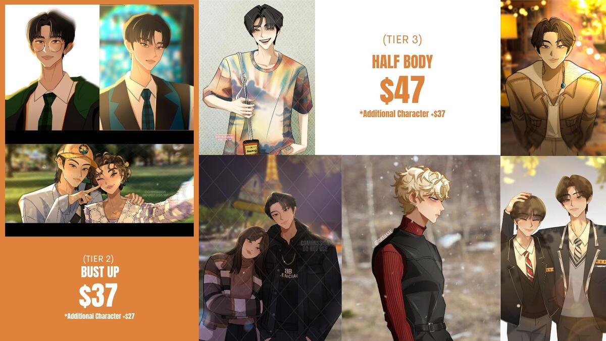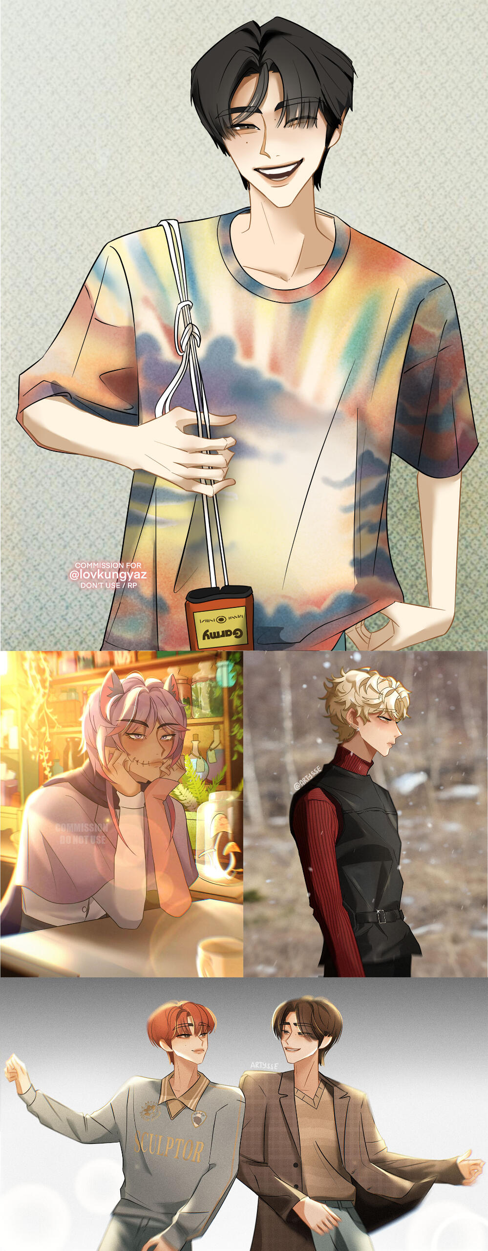 1. Time constraints shall be discussed beforehand2. Please provide references and clear details (such as poses, clothes, etc.) as much as you can. (Compiling all references in a google document is highly appreciated)3. Turnaround time of the art may take 1 - 7 weeks depending on complexity and the artist’s schedule.4. Progress updates of the artwork will be given every 3 days or every week (depending on the artist’s schedule).5. (Note for clients who opted for the 50-50 payment method) Once the artwork is done, an image of the final piece will be forwarded with a watermark. And after the remaining 50% of the balance has been settled, the watermark will be removed.6. The final artwork will be sent via Google drive link.————————————-Note: